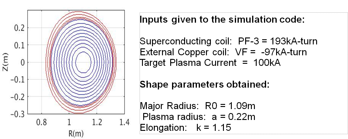 | SST-1 is a medium-size tokamak with a major radius of 1.1m and a minor radius of 0.2m. The toroidal magnetic field is routinely operated at 1.5T ( TF magnets are designed for 3T). ECR preionization and Ohmic system are used to achieve the 100kA plasma current up to 450ms in Ohmic-only scenarios. Launching the Lower Hybrid power of about 100kW has also been used to enhance the 80kA plasma of duration 650ms (limited due to the available equilibrium field provided by the external (Copper-based) vertical field).